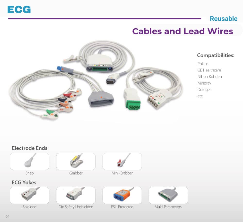 Cables Troncales y Derivaciones, así como cables completos (una solo pieza) de ECG. Para Monitor de Signos Vitales